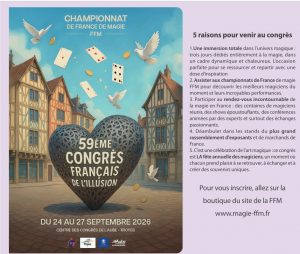 Modifier votre photo de couvertureTéléverser Modifier votre photo de couvertureTéléverser association LES MAGICIENS DE L'ESTUAIRE L’état de ce compte est « Approuvés » À propos À propos Publications Publications Commentaires Commentaires Les Magiciens de l’Estuaire ont reçu pour une conférence et un atelier le magicien Chilien Israël Rodriguez qui a partagé son talent avec les membres du club qui ont été enchantés. Il y a 18 heures dans : Association, Atelier, Conférence, conférences, Evenements, Membres, Membres, Réunion aucun commentaire Conférence de Magie par David Parr à Nantes le 14/03/2026 organisée par Anima Il y a 5 jours dans : Association, Atelier, Conférence, conférences, Evenements, Membres, Membres aucun commentaire Congrès de magie de la FFM à Troyes du 24 au 27 septembre 2026 avec le Championnat de France pour le 59 congrès de l’illusion. Il y a 5 jours dans : Association, Concours, Conférence, conférences, Evenements, Membres, Membres, Spectacle aucun commentaire Diner spectacle de magie: Les portes d’Or Magiques à Nancy avec Alexandra Duvivier et Amaury Gonzague le 7 mars 2026 Il y a 5 jours dans : Association, Evenements, Spectacle aucun commentaire Conférence d’un magicien Chilien d’exception à Saint Brévin d’Israel Rodriguez: le 6 mars à 20h30 et atelier le 8 mars à 10h00, des dates à retenir ! Il y a 4 semaines dans : Association, Atelier, Conférence, conférences, Evenements, Membres, Membres, Réunion, Réunions aucun commentaire L’AG du club des Magiciens de l’Estuaire c’est déroulée le 6 février 2026. Lors de cette AG nous avons eu l’honneur et le plaisir de recevoir Madame la Maire Dorothée Pacaud. Le président et le bureau ont été réélus dans une ambiance conviviale. Il y a 1 mois dans : Association, Evenements, Membres, Membres, Réunion, Réunions aucun commentaire Il y a 3 mois dans : Association, Evenements, Membres, Membres, Spectacle aucun commentaire Le club des Magiciens de l’Estuaire à reçu Michel Huot en conférence le 21 novembre 2025. Il est magicien Québécois professionnel et a partagé son expérience magique avec les membres du club qui ont été enchantés. Il y a 3 mois dans : Association, Atelier, Conférence, conférences, CR de conférence, Evenements, Membres, Réunion, Réunions aucun commentaire Nos magiciens ont animé l’avant-première du film Insaisissables 3 au cinéma Cinéjade de Saint-Brévin le 11 novembre, avec l’enthousiasme et la participation du public. Il y a 4 mois dans : Association, Evenements, Membres, Membres, Spectacle aucun commentaire Conférence de Magie avec Michel Huot à St Brévin les Pins le 21 Novembre 2025 à 20h45 salle Maillet, merci de réserver par téléphone ou par mail. Il y a 4 mois dans : Association, Conférence, conférences, Evenements, Membres aucun commentaire charger plus de publications