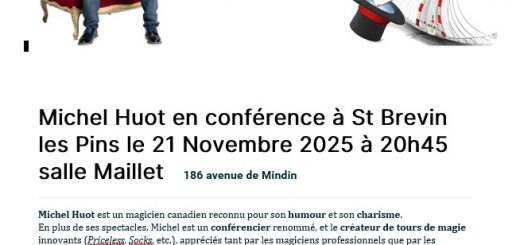 0 Conférence de Magie avec Michel Huot à St Brévin les Pins le 21 Novembre 2025 à 20h45 salle Maillet, merci de réserver par téléphone ou par mail. novembre 12, 2025 par association LES MAGICIENS DE L'ESTUAIRE · Published novembre 12, 2025